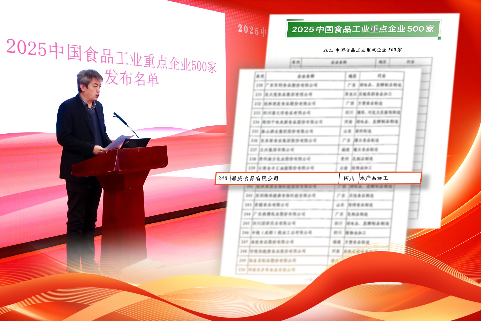 2025年12月25日,由中國食品工業(yè)協(xié)會在北京發(fā)布的《2025中國食品工業(yè)重點企業(yè)500家分析研究》正式揭曉,通威食品有限公司(......